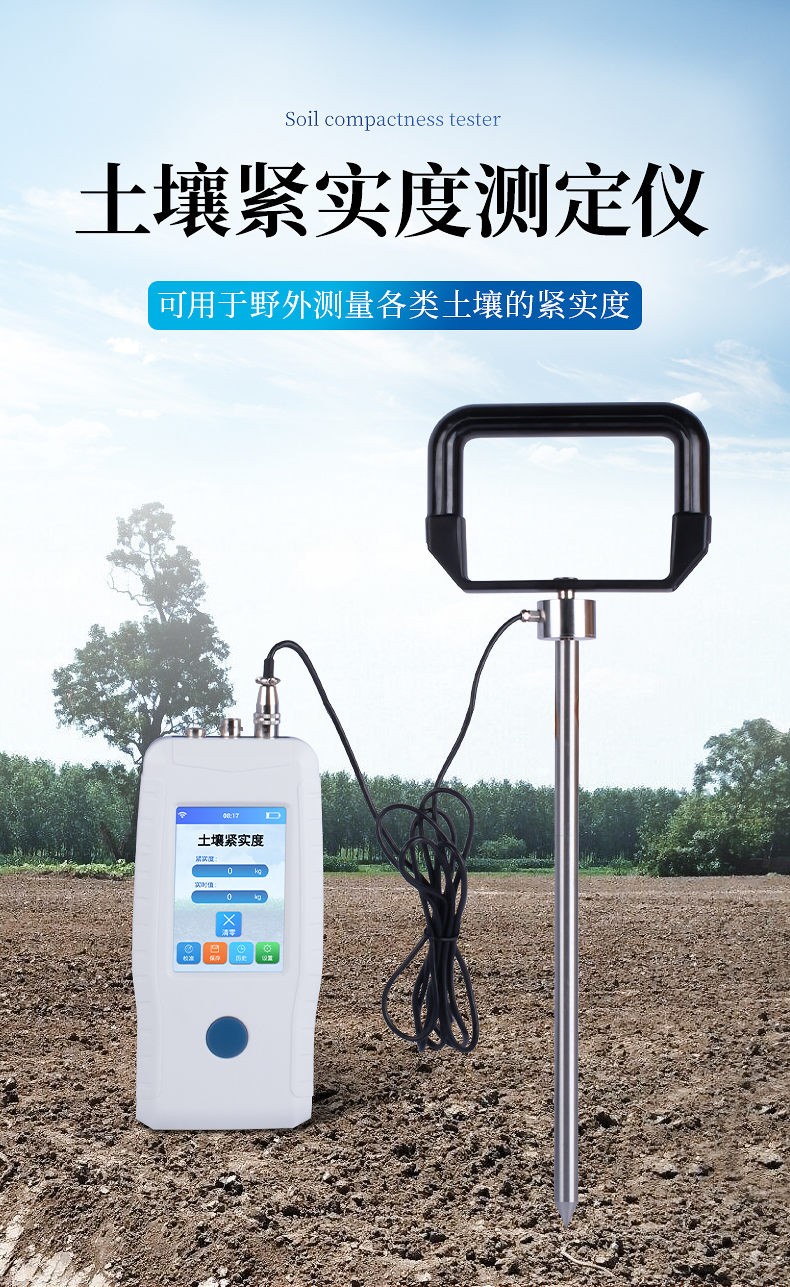 土壤緊實(shí)度由土壤抗剪力、壓縮力和摩擦力等構(gòu)成。是土壤強(qiáng)度的一個合成指標(biāo)。金屬柱塞或探針壓入土壤時分動載和靜載兩種方法,不同方法的測定值不同,但有聯(lián)系。柱塞的形狀有錐體、平頭、圓球及楔子等,這些對測定值也有影響。對同一種方法的測定值,主要決定于土壤質(zhì)地、容重和含水量。其中含水量的影響最大。土壤緊實(shí)度可預(yù)測土壤承載量、耕性和根系伸展的阻力。土壤緊實(shí)度的大小可影響作物根系的穿孔和生長,是一個重要的土壤物理特性指標(biāo),用于評價土壤耕性。緊實(shí)的土壤可阻止水分的入滲,降低化肥的利用率,影響植物根系生長,導(dǎo)致作物減產(chǎn)。