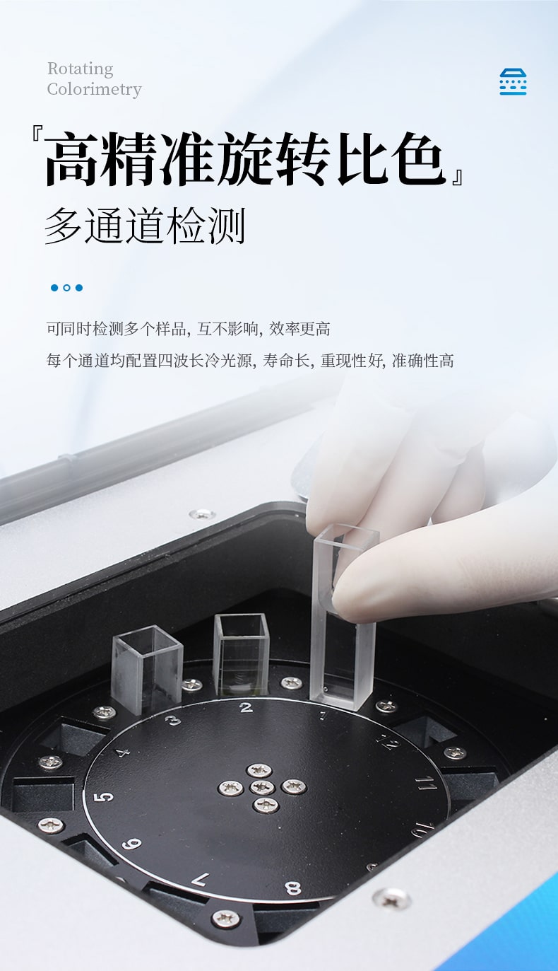 3、8個旋轉(zhuǎn)檢測通道,一次性可快速檢測8個樣品,極大提升檢測效率,降低檢測成本。