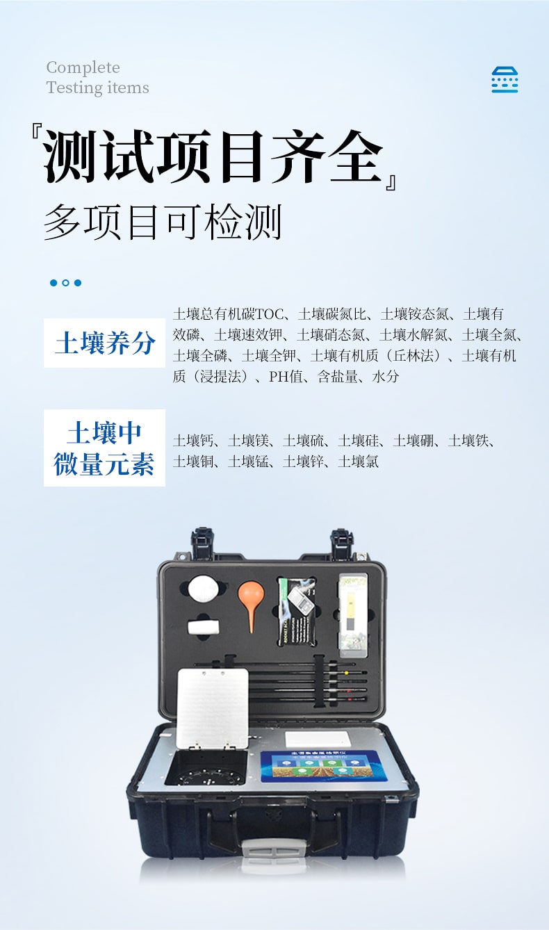 1、土壤養(yǎng)分:●土壤總有機(jī)碳TOC、土壤碳氮比、土壤銨態(tài)氮、土壤有效磷、土壤速效鉀、土壤硝態(tài)氮、土壤水解氮、土壤全氮、土壤全磷、土壤全鉀、土壤有機(jī)質(zhì)(丘林法)、土壤有機(jī)質(zhì)(浸提法)、PH值、含鹽量、水分?!裢寥乐形⒘吭兀和寥棱}、土壤鎂、土壤硫、土壤硅、土壤硼、土壤鐵、土壤銅、土壤錳、土壤鋅、土壤氯。