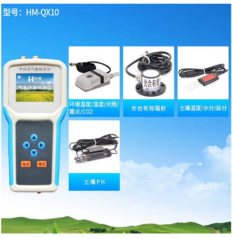 手持式智能農業(yè)氣象環(huán)境檢測儀是我們專門針對農田、草場局部小尺度環(huán)境設計的,對與植被和農作物生長密切相關的土壤、水氣等環(huán)境參數(shù)監(jiān)測的農田小氣候站。它主要觀測與農業(yè)相關的空氣溫度、空氣濕度、光照強度、二氧化碳濃度、露點溫度、光合有效輻射、土壤溫度、土壤水分、土壤鹽分、土壤PH、風速、風向、降雨量、大氣壓力、總輻射、葉面溫度等16個環(huán)境參數(shù)氣象要素,為農業(yè)科研、農業(yè)生產(chǎn)等提供良好的支持。